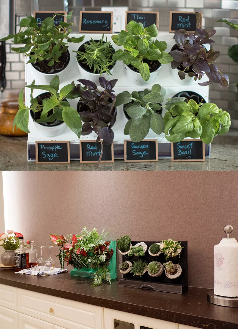 Сад на кухонной столешнице также является отличным предметом для создания «фермы трав» на домашней кухне: каждый 3-дюймовый сменный сетчатый горшок идеально подходит для выращивания трав и небольших растений.