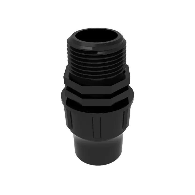 1. Конструкция с резьбовым замком надежно фиксирует полиэтиленовые трубы и фитинги, предотвращая отсоединение под высоким давлением.