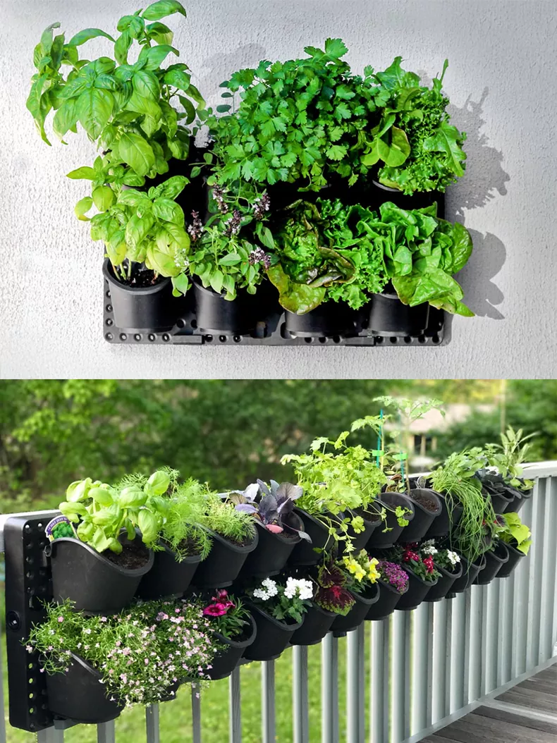 Эта зеленая стена идеально подходит для садоводства на небольших площадях, каждая панель поставляется с восемью небольшими (6,5 дюйма x 4,75 дюйма x 5,5 дюйма) сменными горшками со встроенной системой орошения.
