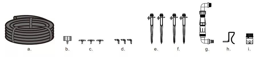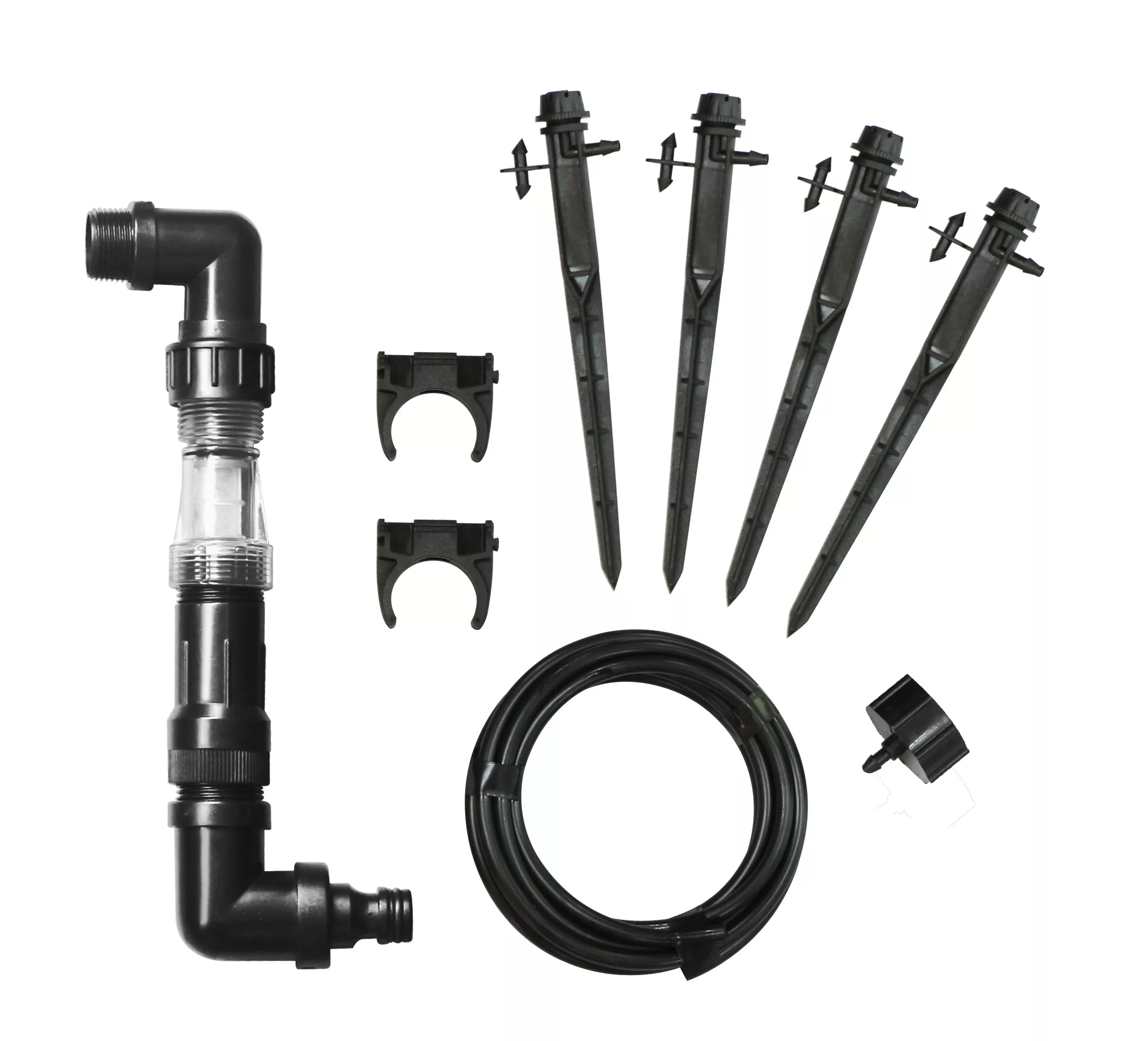 Весь набор аксессуаров, от трубопроводов, соединений до крюков и соединителей, предоставляется за один раз, что устраняет необходимость приобретать их отдельно и позволяет избежать проблемы неподходящих аксессуаров, что позволяет выполнить настройку орошения за один этап.