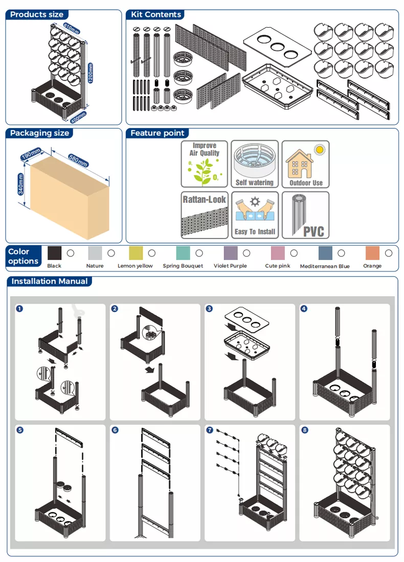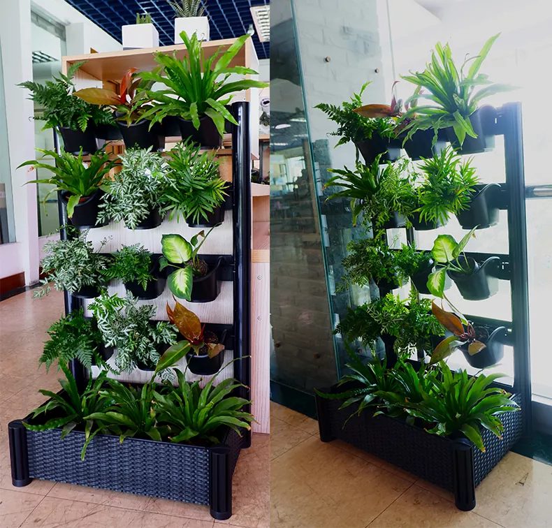61*40*102 см (Д*Ш*В) Отдельно стоящая зеленая стена для использования в помещении с горшком 12 шт. x#1 (13,7 x 16,5 x 12,5 см), горшком 3 шт. x 4 дюйма, самополивающимся капиллярным поддоном