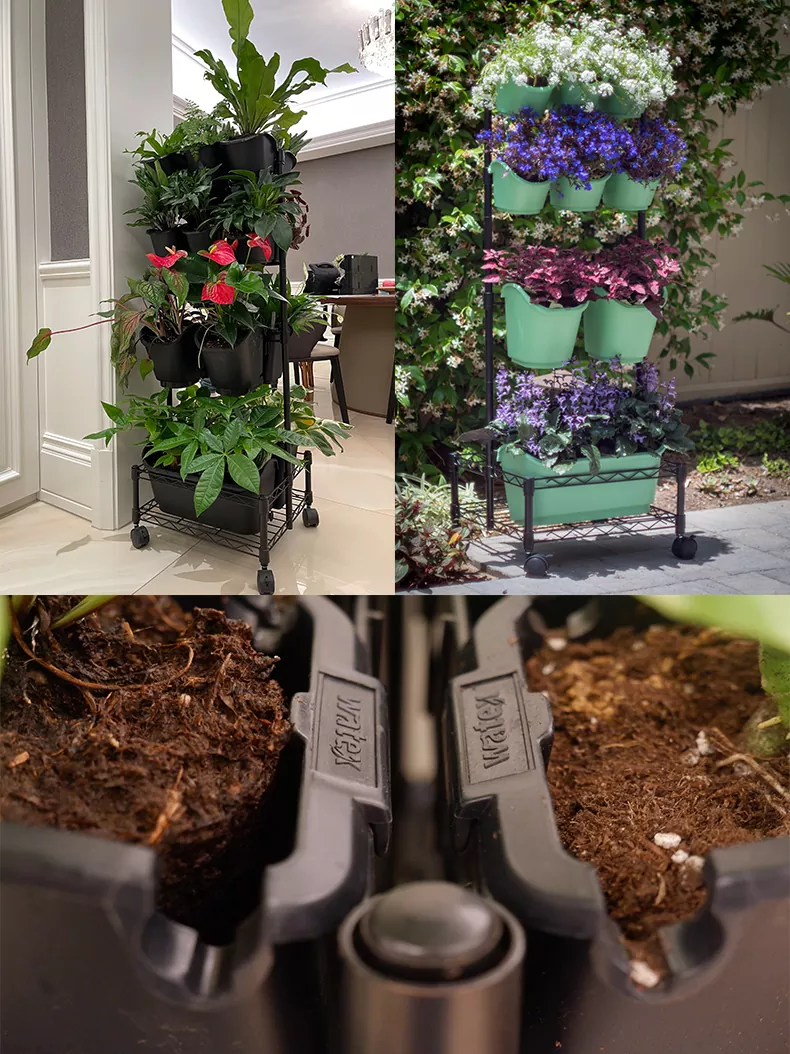Система орошения, оснащенная двойной рамой Metal Mobile Green Wall, помогает равномерно распределять воду через капельную систему.