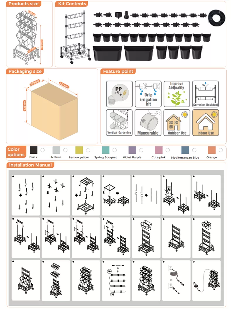 · Портативность этого сада позволяет легко перемещать его на солнце или в тени, а также перемещать внутрь в суровую погоду.