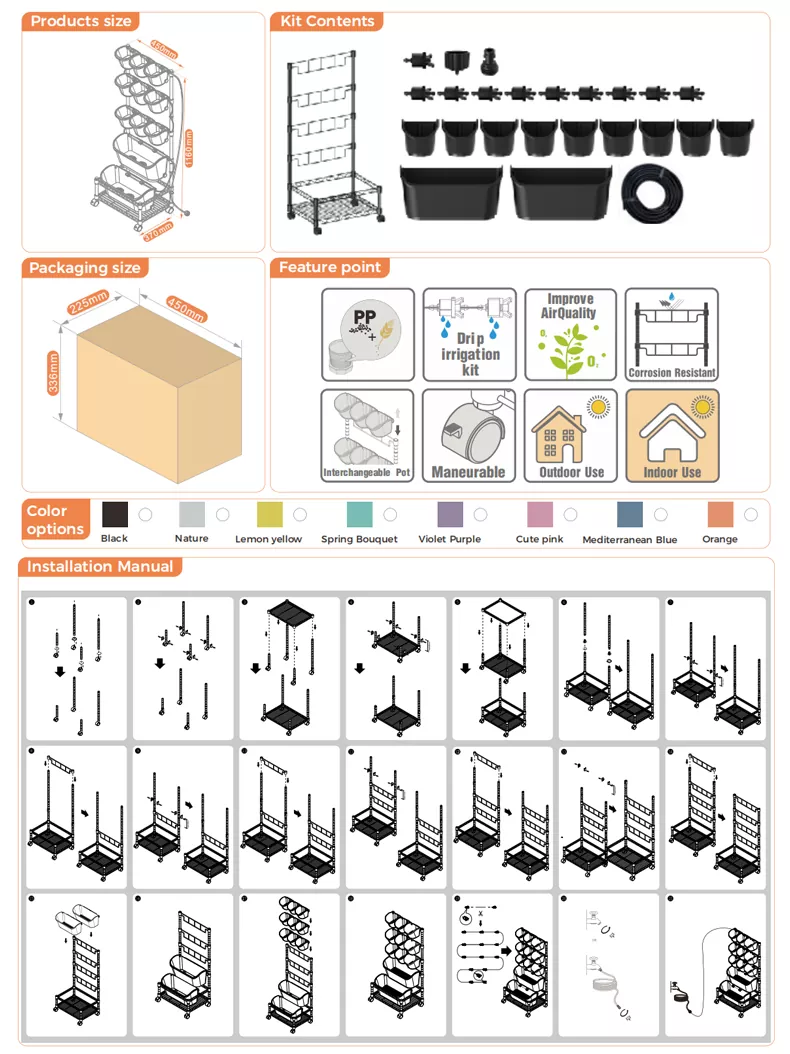 Watex® является специализированным китайским производителем и поставщиком металлических мобильных однорамных цветочных горшков с зелеными стенами. Особенности наших запатентованных систем зеленых стен: встроенная ирригация для облегчения полива. Модульная конструкция, обеспечивающая гибкое расширение. Оросительный спринклер позволяет регулировать поток воды. В дополнение к обычным вертикальным зеленым стенам наша компания также спроектировала и разработала подвижные зеленые стены. Этот тип передвижной зеленой стены подходит для использования внутри помещений. Потребители могут организовать зеленую стену в соответствии со своими обстоятельствами и посадить на ней свои любимые зеленые растения. Сочетая инновации с функциональностью, Watex предлагает устойчивые решения по озеленению с помощью запатентованных технологий. Мы обладаем сертификатами ISO 9001, ISO 14001, BSCI и ICS, гарантируя качество и устойчивость. Благодаря 30-летнему опыту в области глобального экспорта наша продукция поставляется в Европу, Австралию, США и за пределы. Мы стремимся предоставлять высочайшее качество по самым конкурентоспособным ценам.