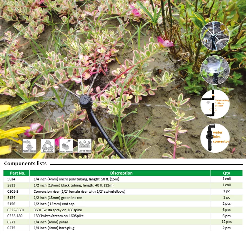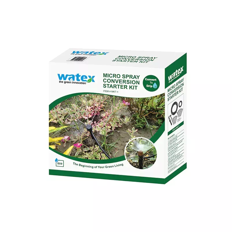 Стартовый комплект для переоборудования микрораспылителя MKT-01 1. Легко превратить выдвижной разбрызгиватель в эффективный микроразбрызгиватель. ирригационная система Содержит все необходимые элементы, необходимые для преобразования поп- дождевание до системы полива микрораспылением Система орошения микрораспылением более эффективна и Метод экономии полива для полива вашего сада